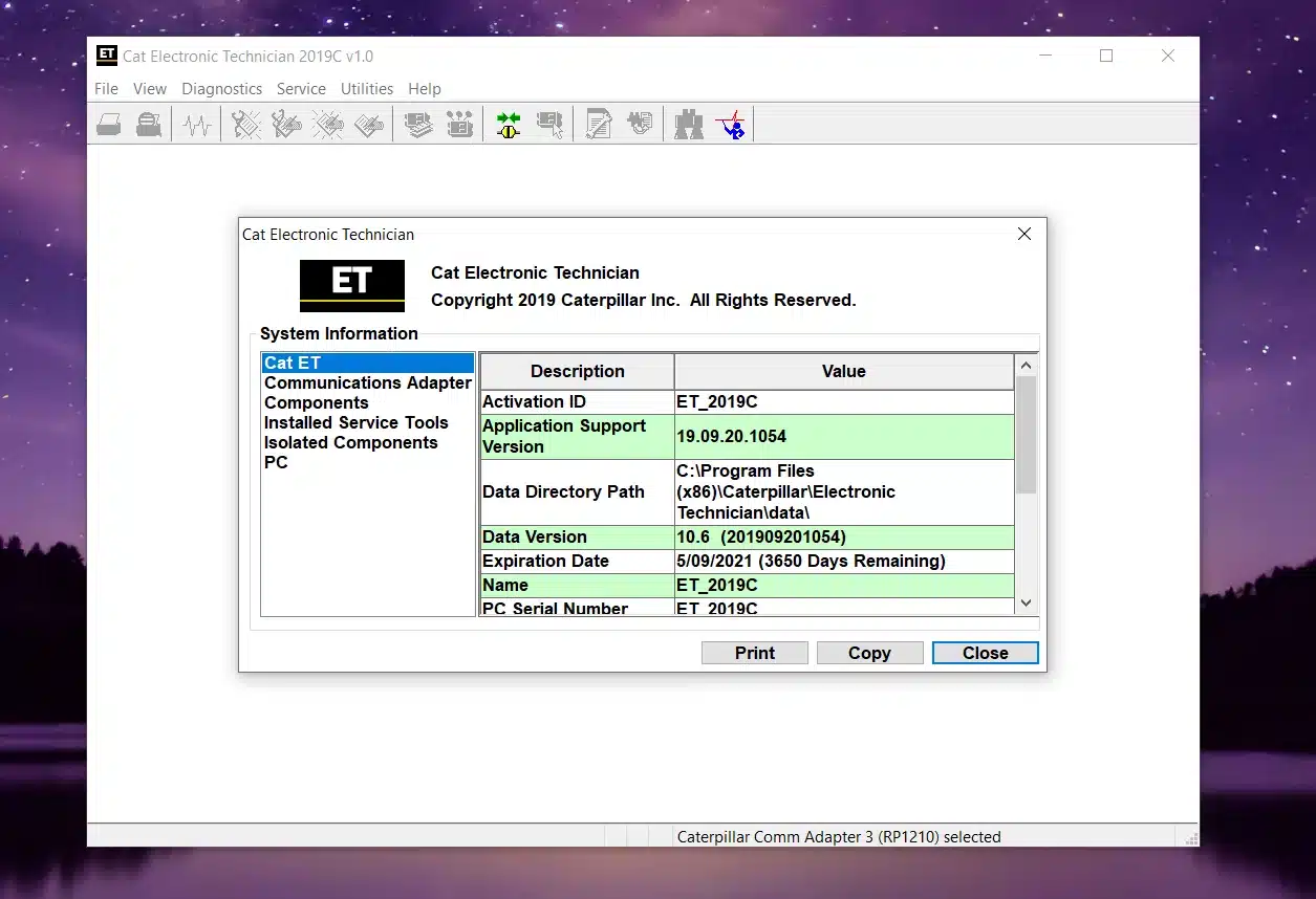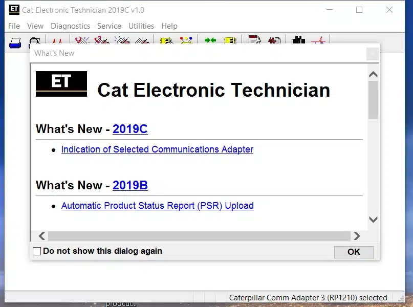 Caterpillar CAT ET 2019C is a vital diagnostic tool designed for technicians working with Caterpillar machinery. It enables efficient access to engine control modules and provides essential functionalities for troubleshooting and configuration. The software supports various tasks, including reading error codes and customizing engine parameters. With its user-friendly interface, the CAT ET 2019C ensures effective diagnostic practices in maintaining heavy equipment performance.