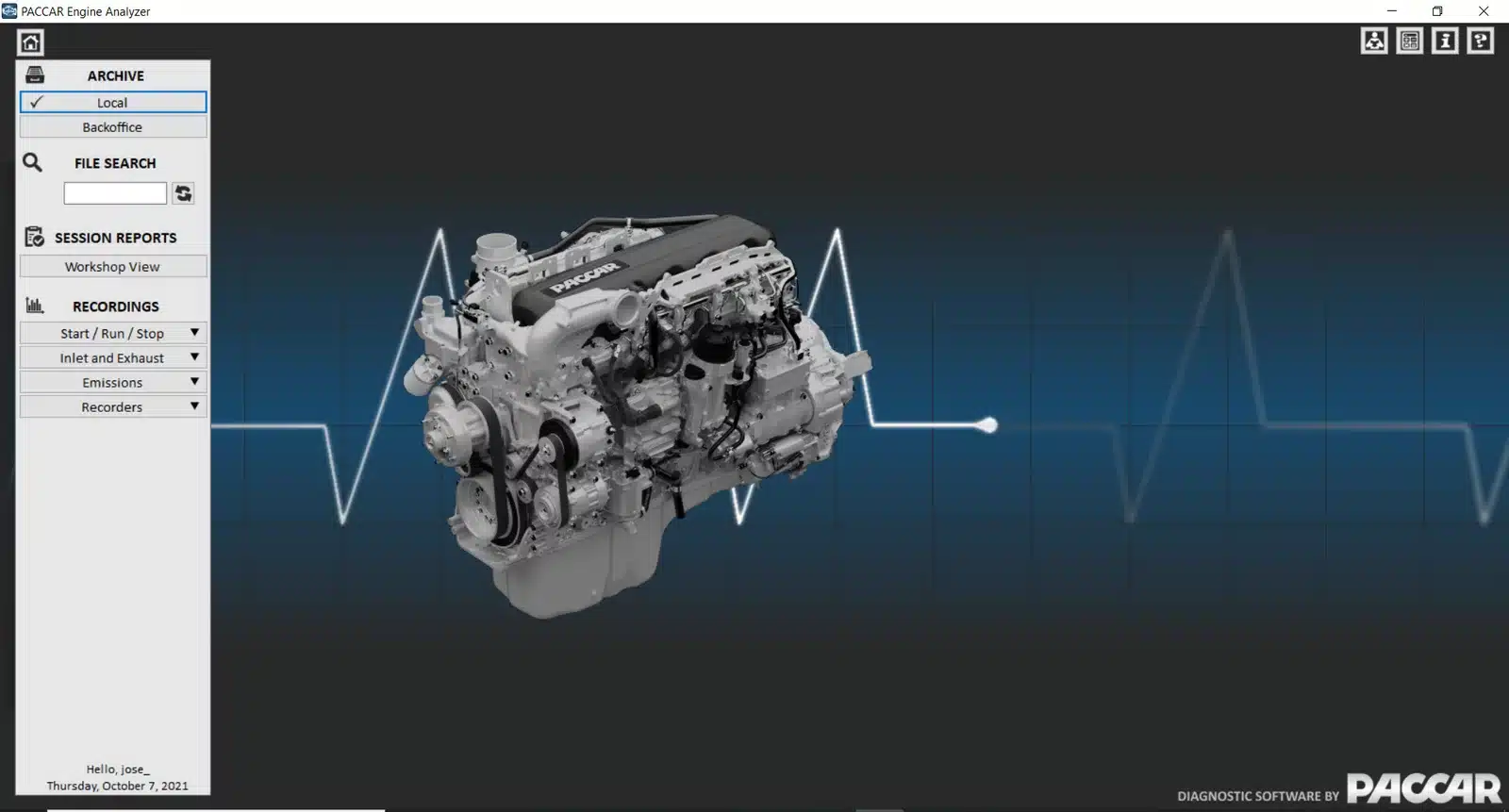 - Launch the PACCAR Engine Analyzer application from the desktop or start menu.